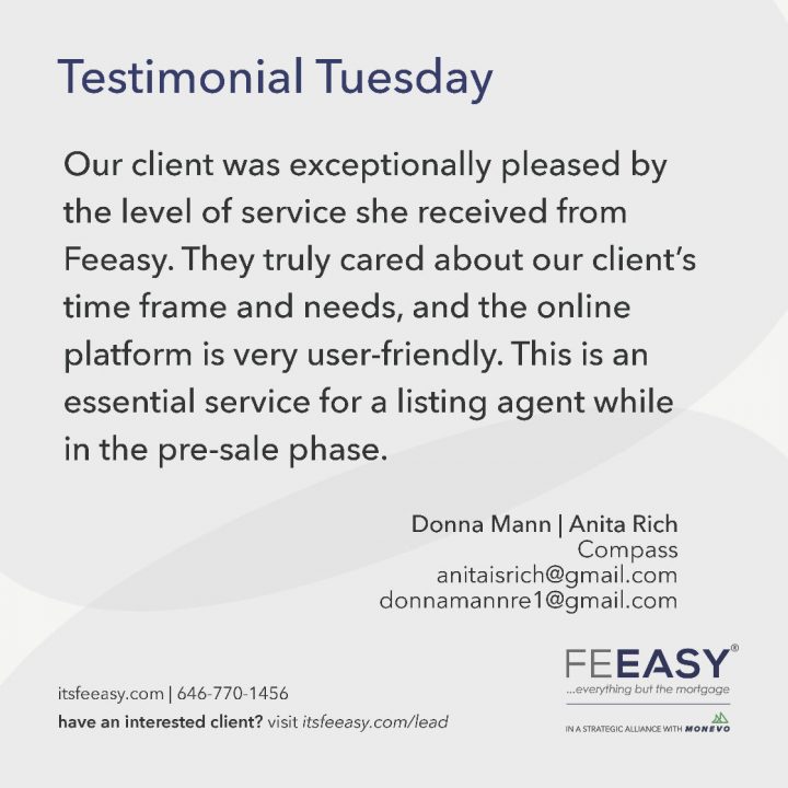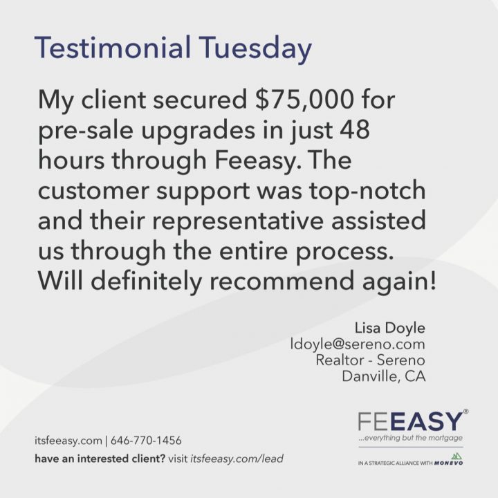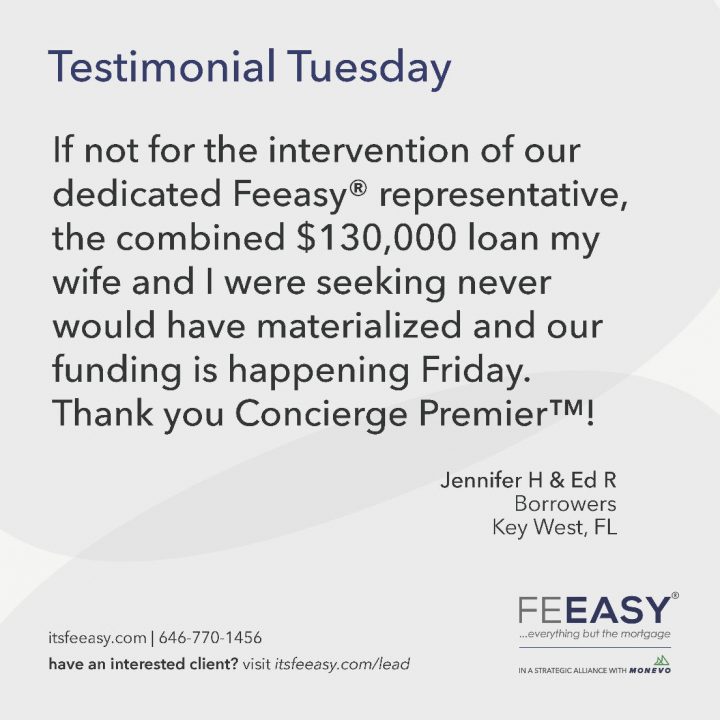 By John Giannone | November 4, 2022 We know how busy real estate agents are, so it was important for Feeasy® to bring a value-add tool to the market. Enter Concierge Premier™, which matches your clients with a dedicated Feeasy representative at no cost to secure financing. Our representatives are there to provide one-on-one assistance to […] -