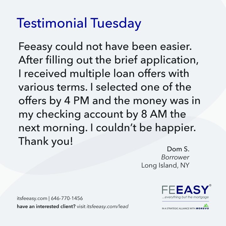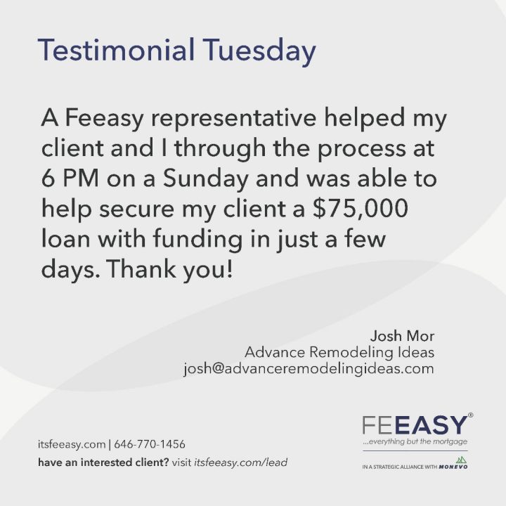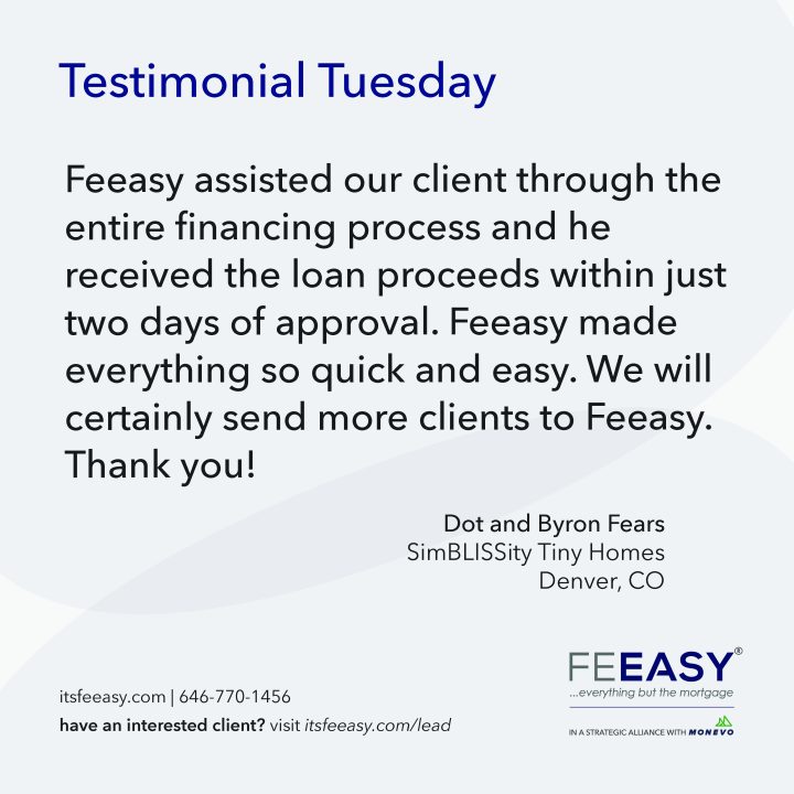 Feeasy continues to disrupt the real estate industry and its ancillary service sectors by increasing consumer accessibility to collateral-free financing through its national alliances with vendors within the real estate industry.