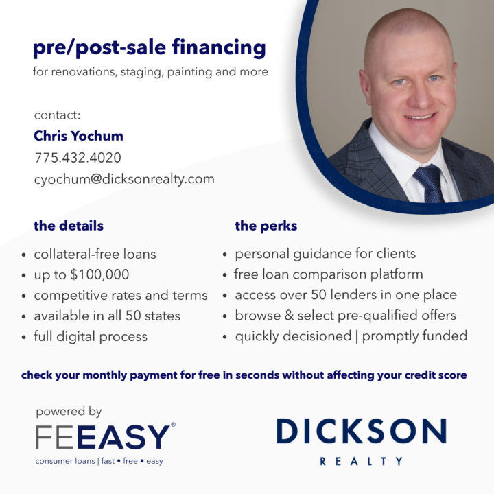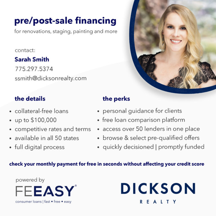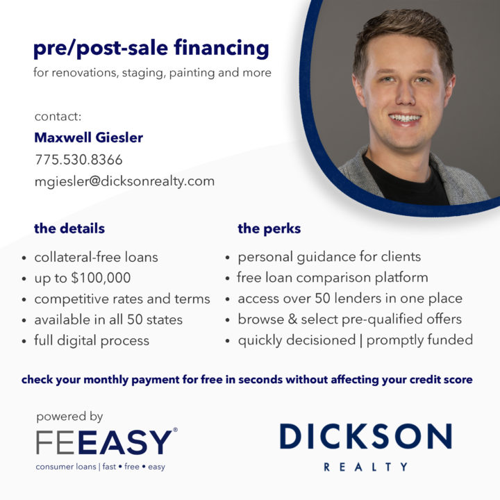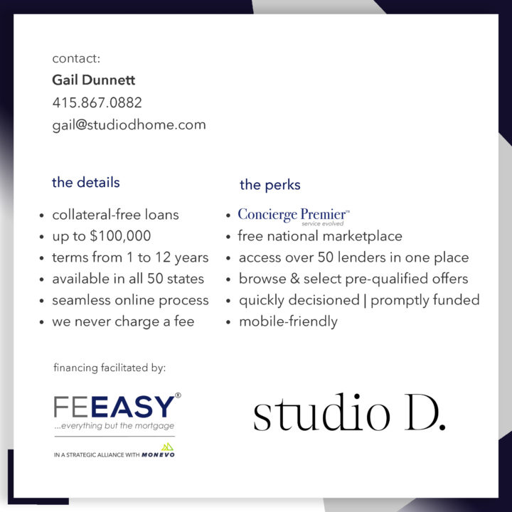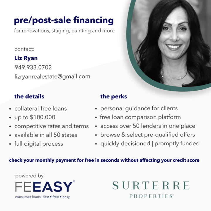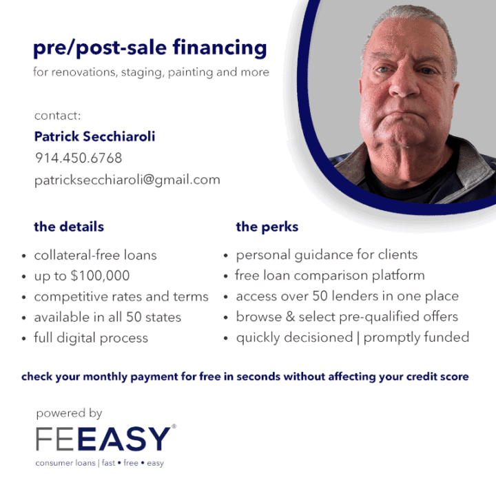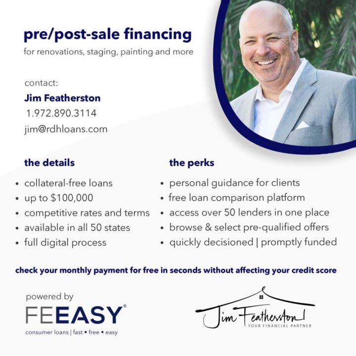 we partner with real estate agents and brokerages, and mortgage brokers nationwide to provide their clients collateral-free financing solutions for pre/post-sale preparation costs, including home improvements, staging, moving expenses and much more